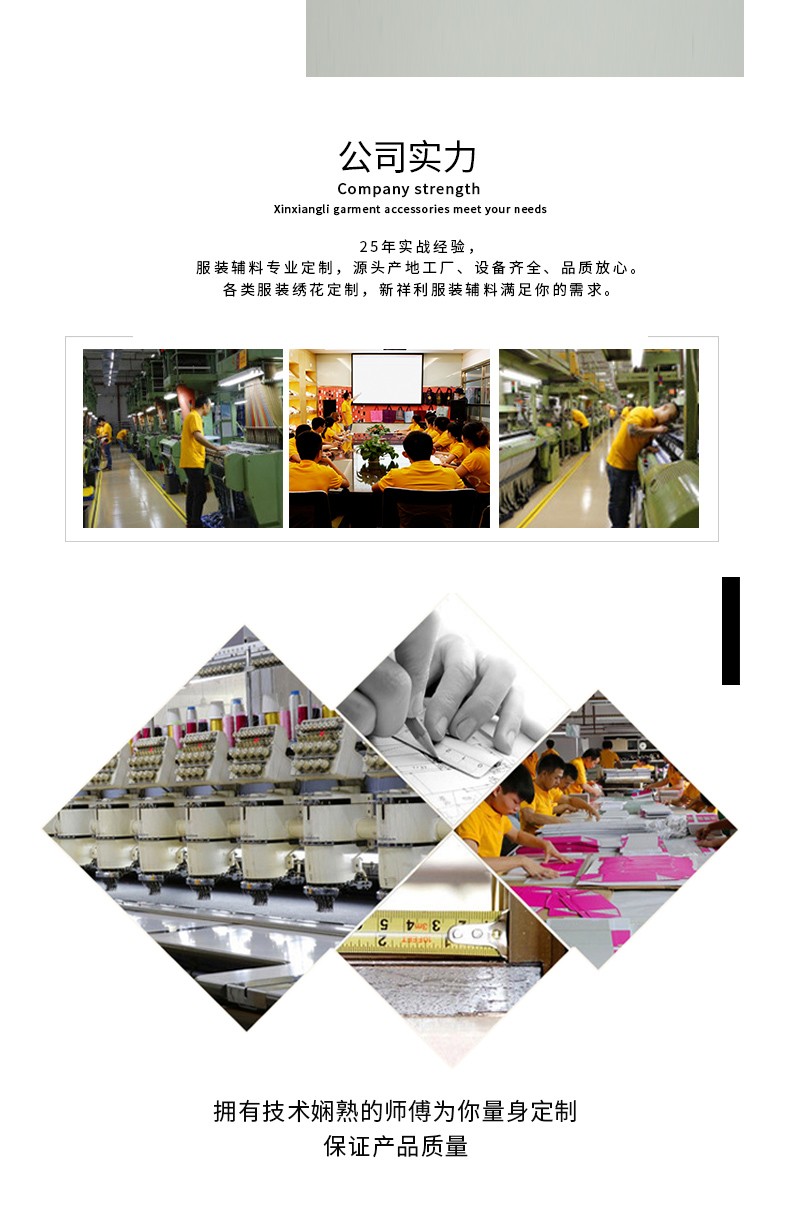 产品种类:3D立体绣、贴布绣、绣花章、毛巾绣/勾冷绣、特种混合绣