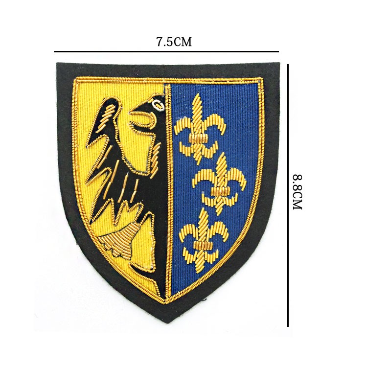印度丝绣花章,早起源于印度,故又称印度丝徽章、铜丝徽章、弹簧丝徽章、印度绣花章、金属刺绣章等,采用印度特有的金属线为主要材料,并用传统的手工艺绣花,一针一线刺绣而成。其手工精细,令人叹为观止,绣出来的产品高档华丽,层次分明。