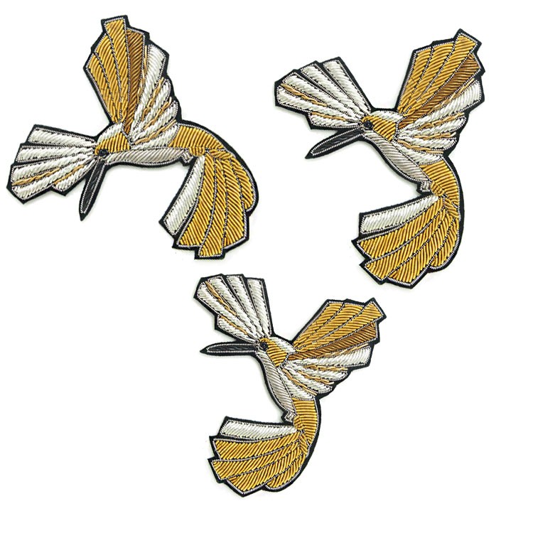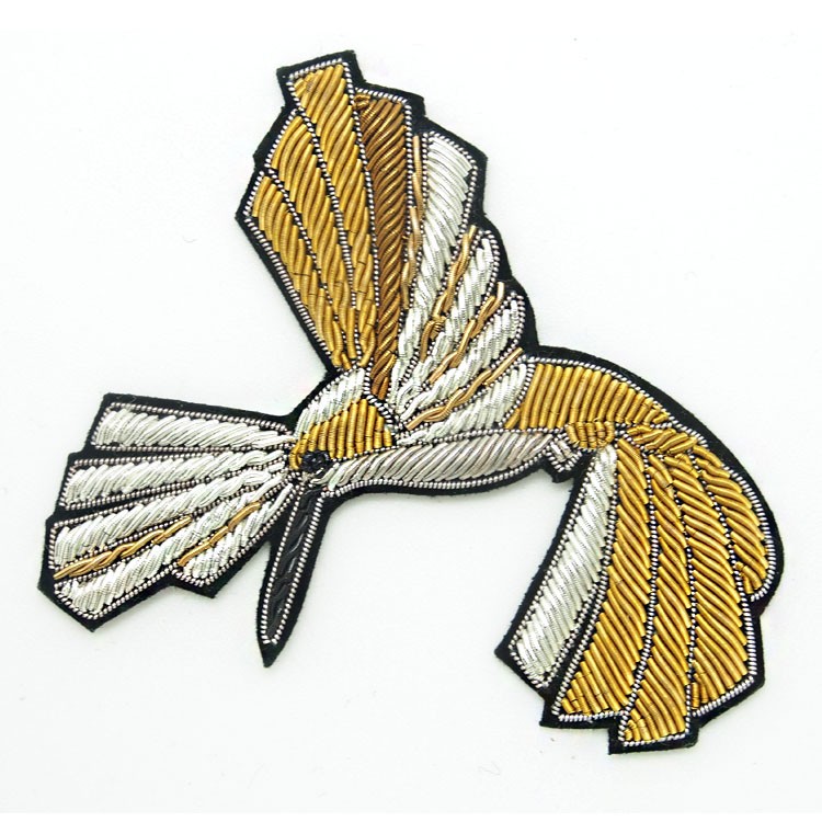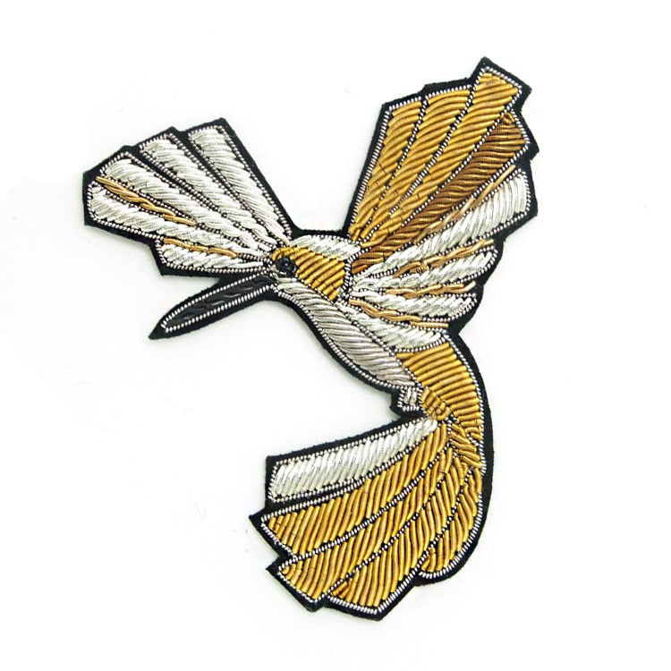 印度丝绣花章,早起源于印度,故又称印度丝徽章、铜丝徽章、弹簧丝徽章、印度绣花章、金属刺绣章等,采用印度特有的金属线为主要材料,并用传统的手工艺绣花,一针一线刺绣而成。其手工精细,令人叹为观止,绣出来的产品高档华丽,层次分明。